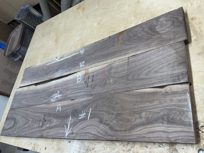 The more I work with beautiful wood species, the more time I spend looking at the grain and figuring out how to make it as stunning as possible. I was fortunate to find a local company Hardwood Industries, that had an excellent selection of 6/4 Walnut in stock. I was allowed to hand select the specific pieces that I needed for this project. The selection was fantastic and I believe that I found some incredible pieces.