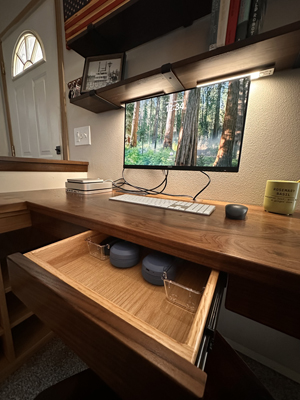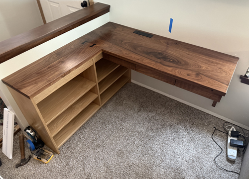 • Wood species, which was negotiated. We settled on White Oak for the bookcase and Walnut for the Desktop.