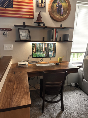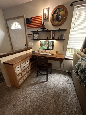 One of my granddaughters has started eighth grade this year. She has a strong interest in computer graphic arts, programing and robotics. She has outgrown the family laptop and her iPad for advancing her graphic arts and computer skills. Her parents decided that getting a more capable computer and a workstation would be the next step in aiding her education. I was asked to design and build this computer desk/workstation.