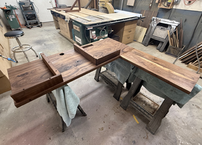 Other than what is mentioned above, I was given a pretty wide-open creative license. I decided to push my woodworking skills and try a new technique. I was going to join the two main top pieces using a "Bow Tie" or sometimes called a "Butterfly" joint. I had never done a Bow Tie before, so I was looking forward to the challenge.